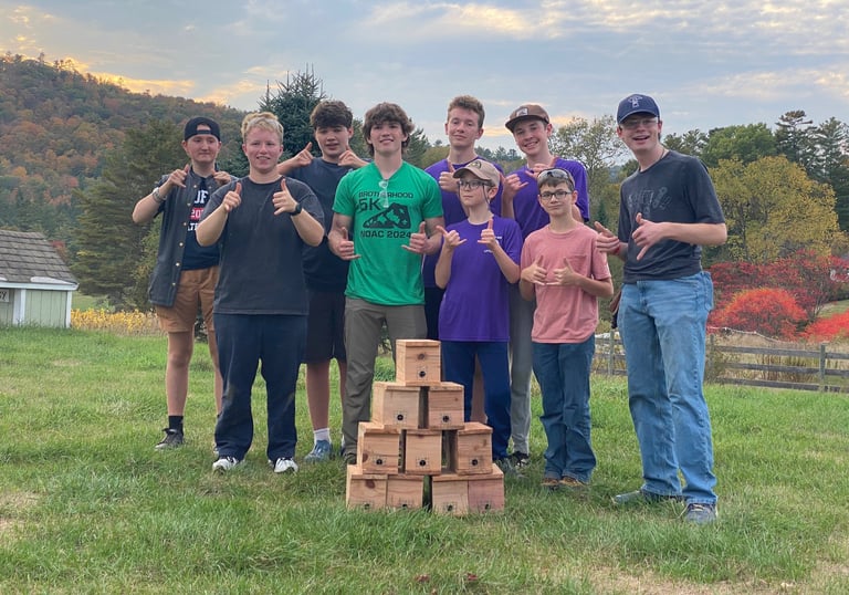 We camp in all seasons! Earn “frost points” for each degree below freezing! Most campouts are local at our Palmer Brook Scout Reserve.